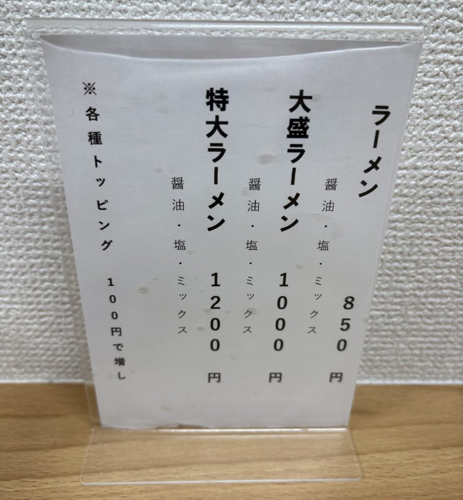 まるひらのメニューは実にシンプル。「醤油」「塩」「ミックス」の3種類のみ。