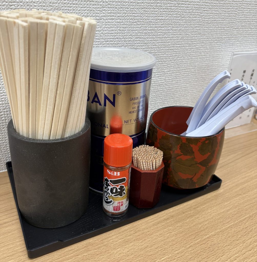 卓上にはメニュー表と胡椒、ティッシュが設置されており、細かい気配りも感じられました。