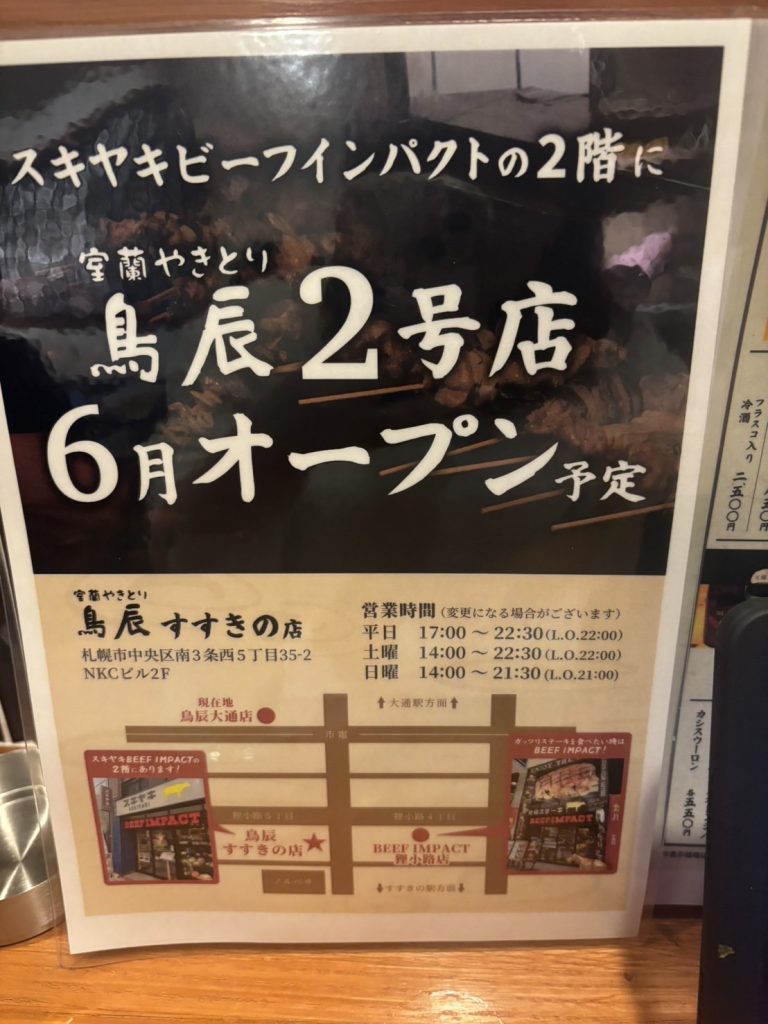 2025年4月にオープンしたばかりの「室蘭やきとり 鳥辰 大通店」に行ってきました!