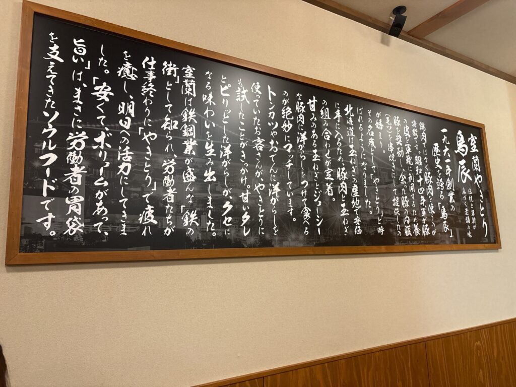 壁面に大きく室蘭やきとりの歴史が書いたボードが飾られていて、全部読んでしましました。