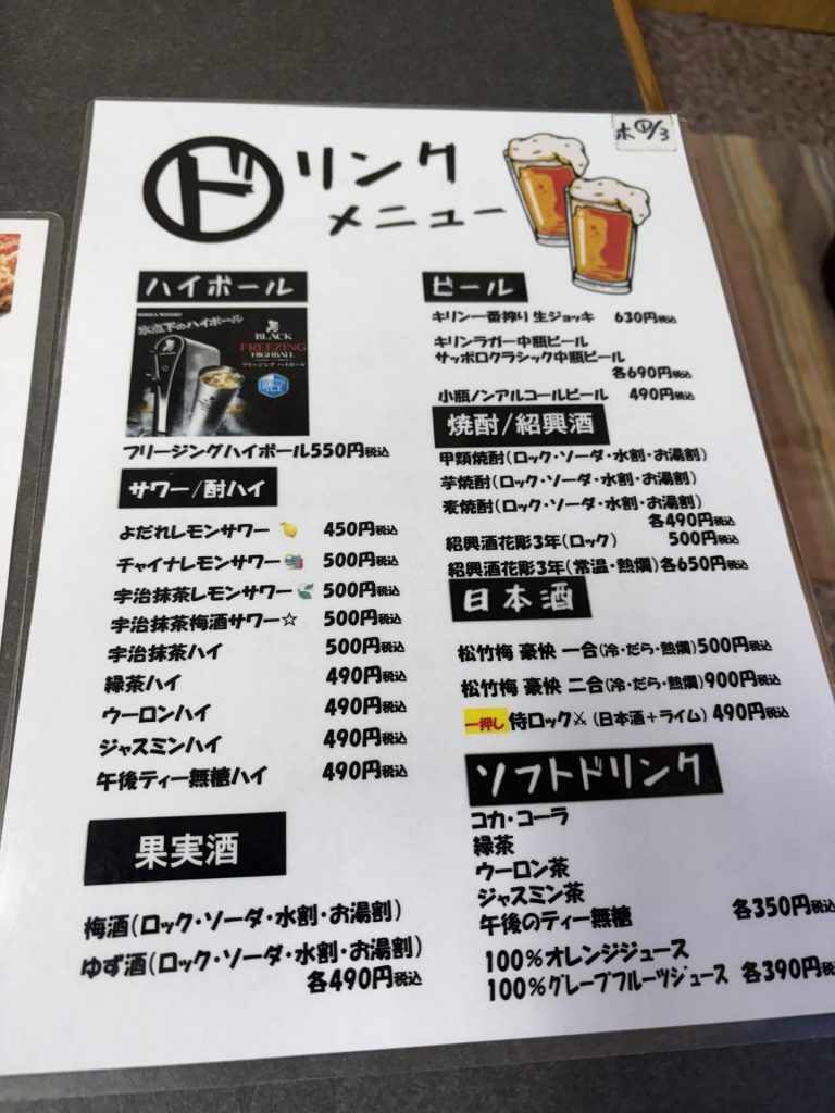 2025年現在、一部の席でタブレット注文が導入されていました。