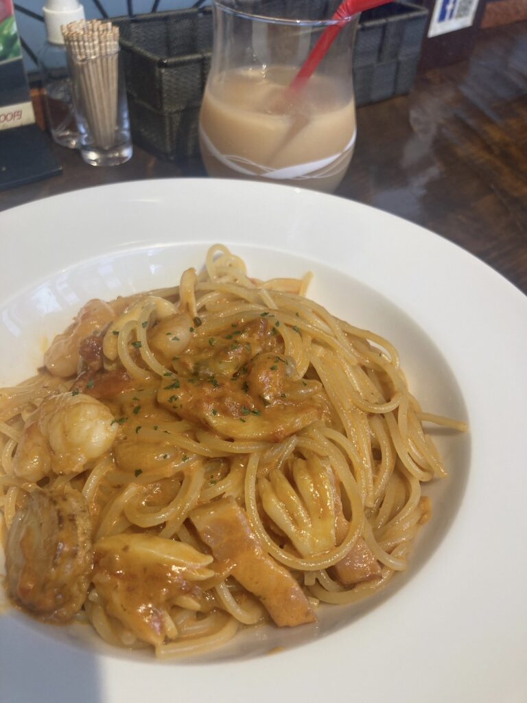 海の幸のトマトクリームパスタ