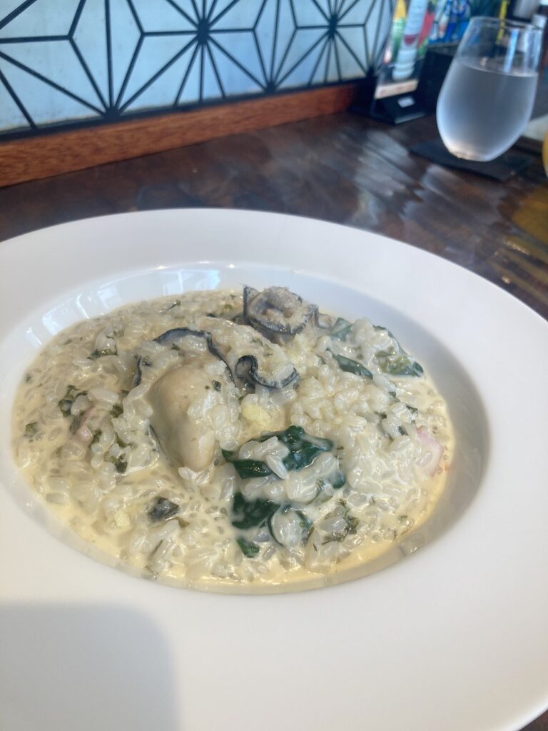 リゾットのご飯はベタつかず、一粒一粒がしっかり立っている仕上がりで、丁寧に作られているのがわかります。