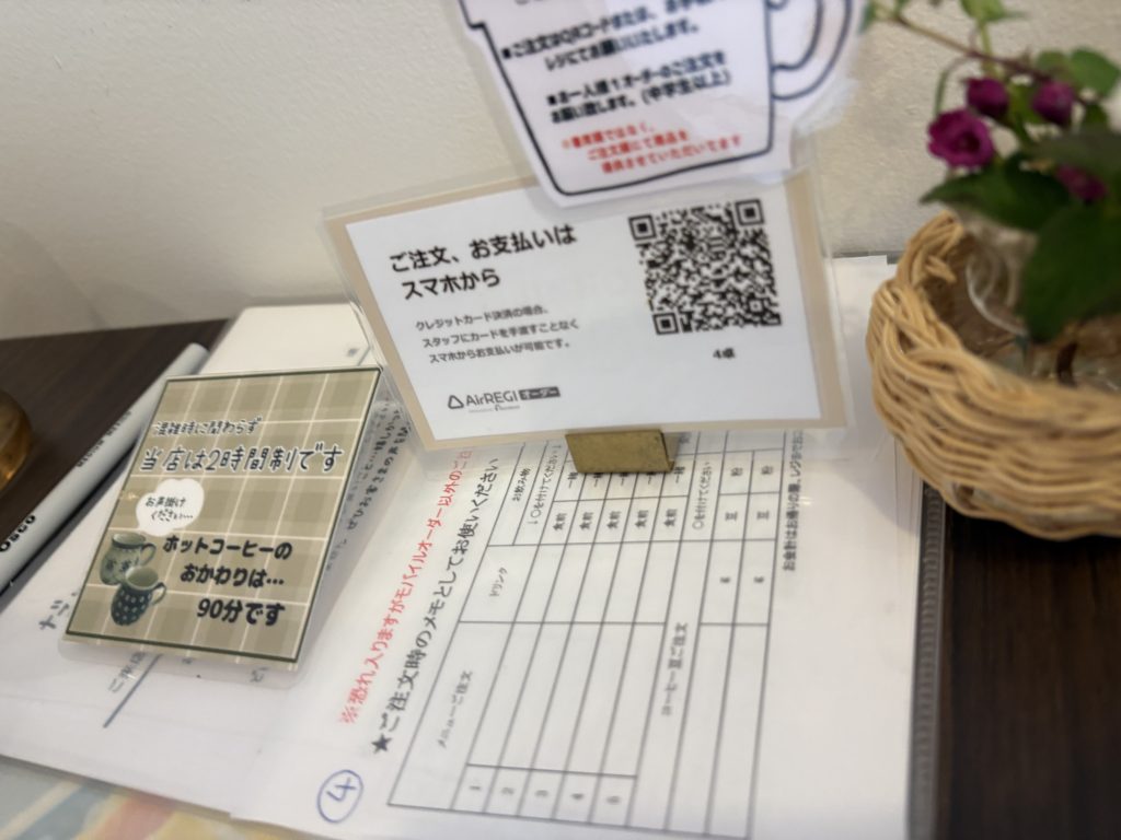 注文はQRコードでスマホからとなります。