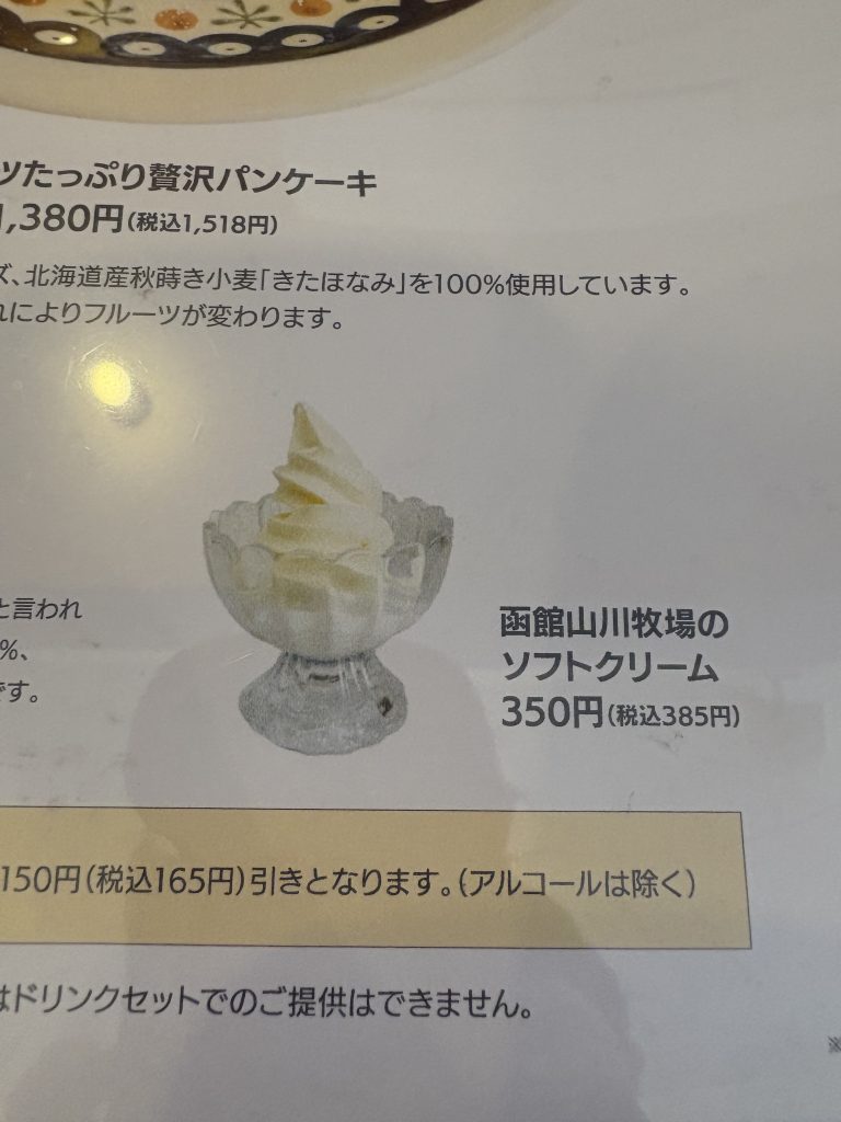 パンケーキだけでも大満足でしたが、メニューを見て気になったソフトクリームも追加注文しちゃいました(^^♪