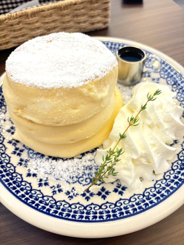 運ばれてきた二段重ねのパンケーキはプルプルと揺れて、崩れてしまわないか心配なほど!見た目のインパクトに期待値も膨らみます(^^♪