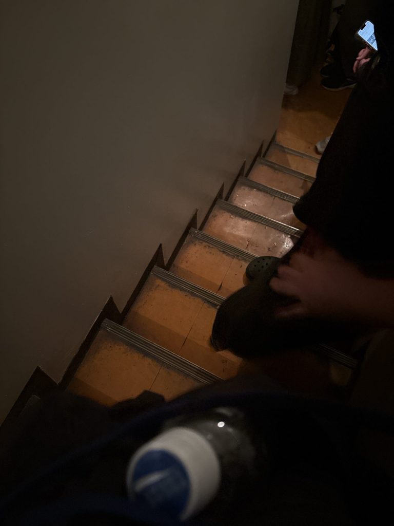 ようやく階段を降り切って、残り数名の待ち順です。並び始めてからちょうど1時間半経ちました。