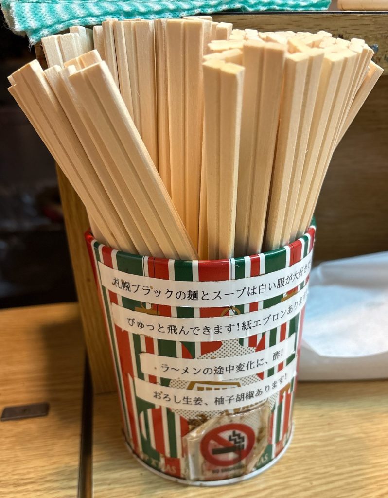 看板メニューの札幌ブラックは、2025年5月現在で1,000円。麺は太麺が基本ですが、中細麺への変更も可能です。