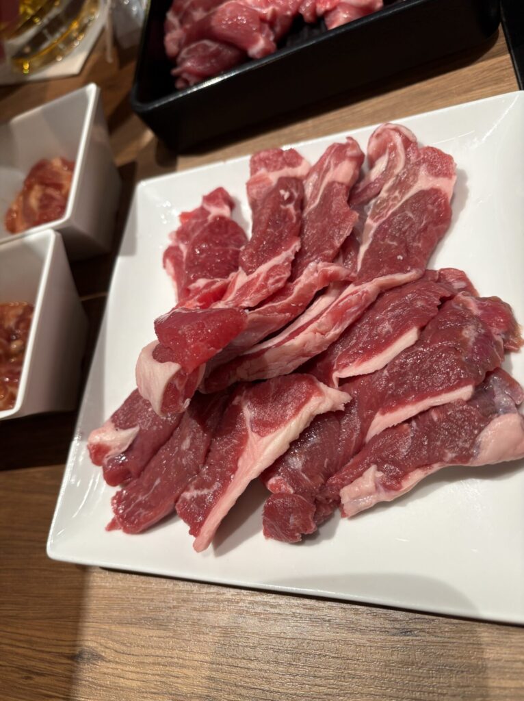 - 国産牛ロース / 豚塩ホルモン / ラムロース / ラムスペアリブ / ラムもも / ラム肩ロース
