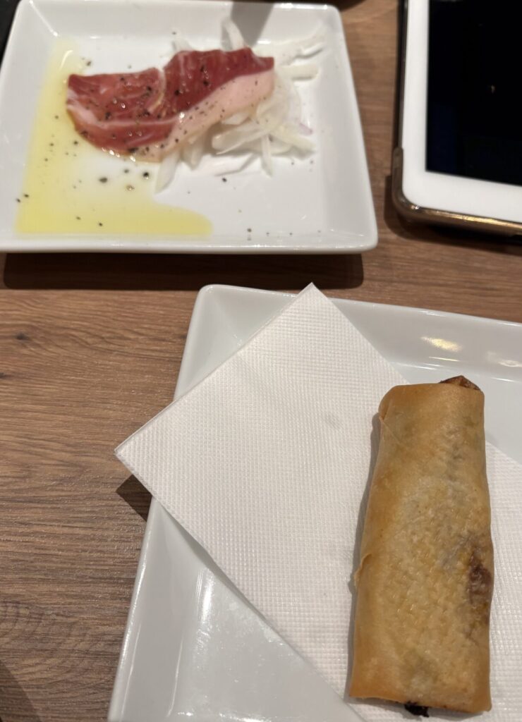 単品料理として「ラム春巻き」と「ラムの生ハム」も頼んでみました。どちらも美味しかったのですが、ラム特有の風味はあまり感じられなかったので、ラム好きには少し物足りないかもしれません。